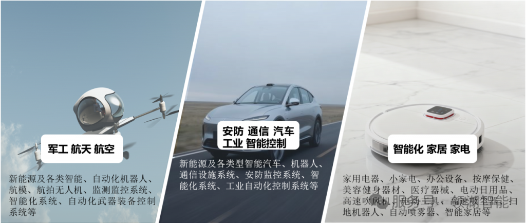 • 资本与生态:获 VC 两轮投资 + 政府基金(A + 轮),与低空经济、医疗器械、智能家居家电、新能源汽车领域及以优必选为代表的各类型机器人厂商深度合作,形成 “研发 – 生产 – 应用” 闭环。