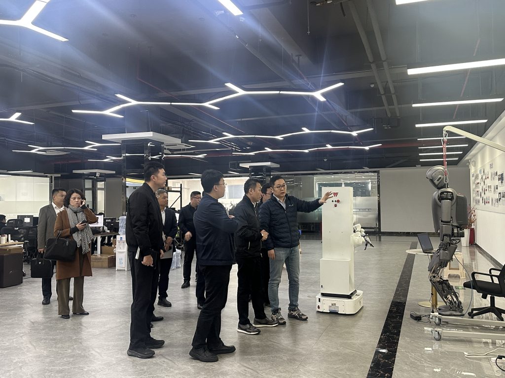 在领湖智能CEO程至强的陪同下,福海街道办领导一行深入公司研发中心与智能生产车间,实地察看生产线运行态势,现场观摩人形机器人产品演示。程总围绕公司发展历程、生产经营现状及未来战略规划作全面汇报,朱书记认真听取汇报并就技术研发、市场拓展等关键问题与团队深入交流。